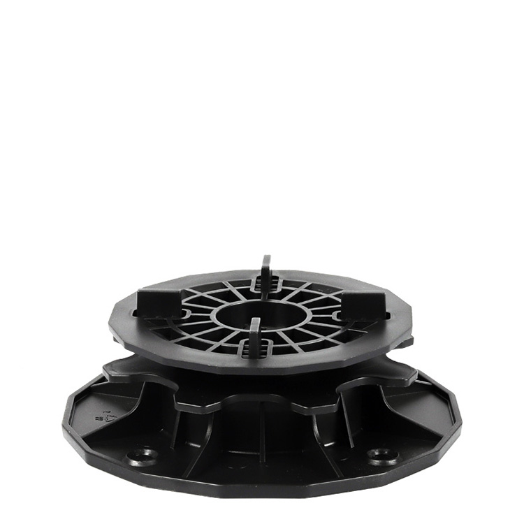 The pedestal can be installed directly—without the need for additional pads—on naturally or mechanically compacted ground, stabilized aggregate layers, as well as on various types of waterproofing membranes and roofing foils. This makes it a flexible solution suitable for a wide range of outdoor surfaces, including terraces, rooftops, and garden paths.