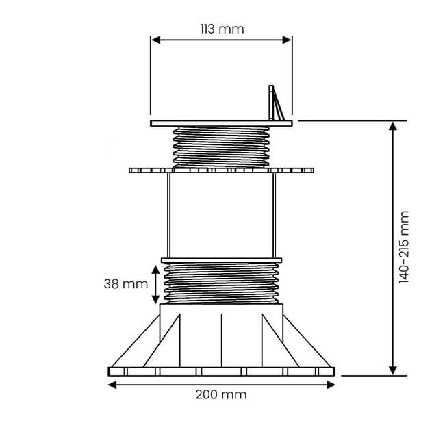 Regulowany wspornik tarasowy pod legar 140-215 mm